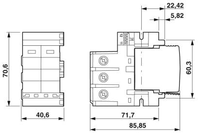 | Указание | Для защищенного от прикосновения монтажа в корпусе. В приложениях с UC > 500 В необходимо предусмотреть боковые зазоры и зазоры со стороны ввода проводников между токоведущими частями, а также между токоведущими и заземленными частями, не менее 5 мм. |