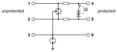 Устройство защиты от перенапряжений (защитный штекер и базовый элемент), со встроенным индикатором состояния для одной 2-проводной сигнальной цепи без потенциала земли. Непрямое заземление через газовый разрядник.
