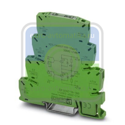 PLC-INTERFACE с двумя независимыми реле, состоит из основной клеммы PLC-BSP.../21 с пружинным соединением и интегрированным силовым контактом, для монтажной рейки NS 35/7,5, 2 х 1 замыкающих контакта, входное напряжение 24 В DC