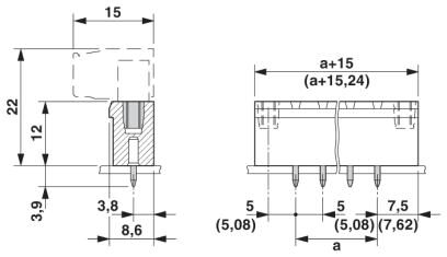 Корпусная часть для печатных плат, номинальный ток: 12 A, расчетное напряжение (III/2): 320 В, полюсов: 13, размер шага: 5,08 мм, цвет: бело-зеленый, поверхность контакта: олово, монтаж: Пайка волной припоя