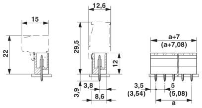 Корпусная часть для печатных плат, номинальный ток: 12 A, расчетное напряжение (III/2): 320 В, полюсов: 23, размер шага: 5 мм, цвет: черный, поверхность контакта: олово, монтаж: Пайка волной припоя