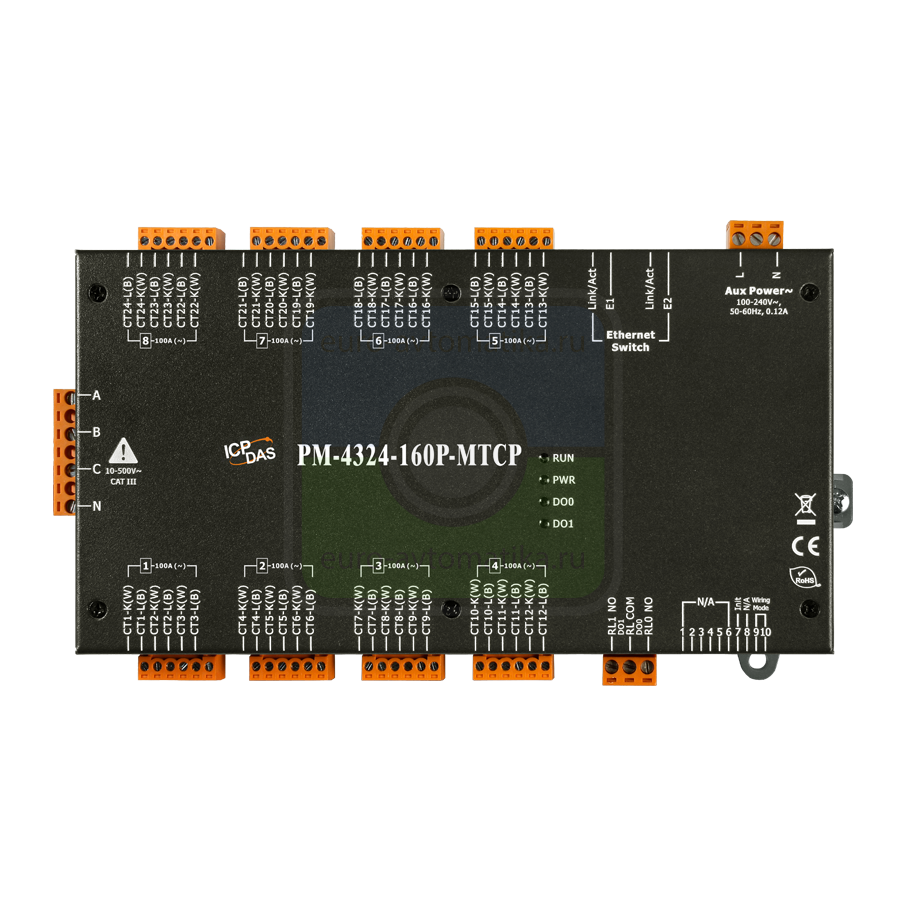 Интеллектуальный многоканальный измеритель параметров сети, 8 каналов для трёхфазной сети или 24 канала для однофазной сети, Modbus TCP, в комплекте токовое кольцо 100 А