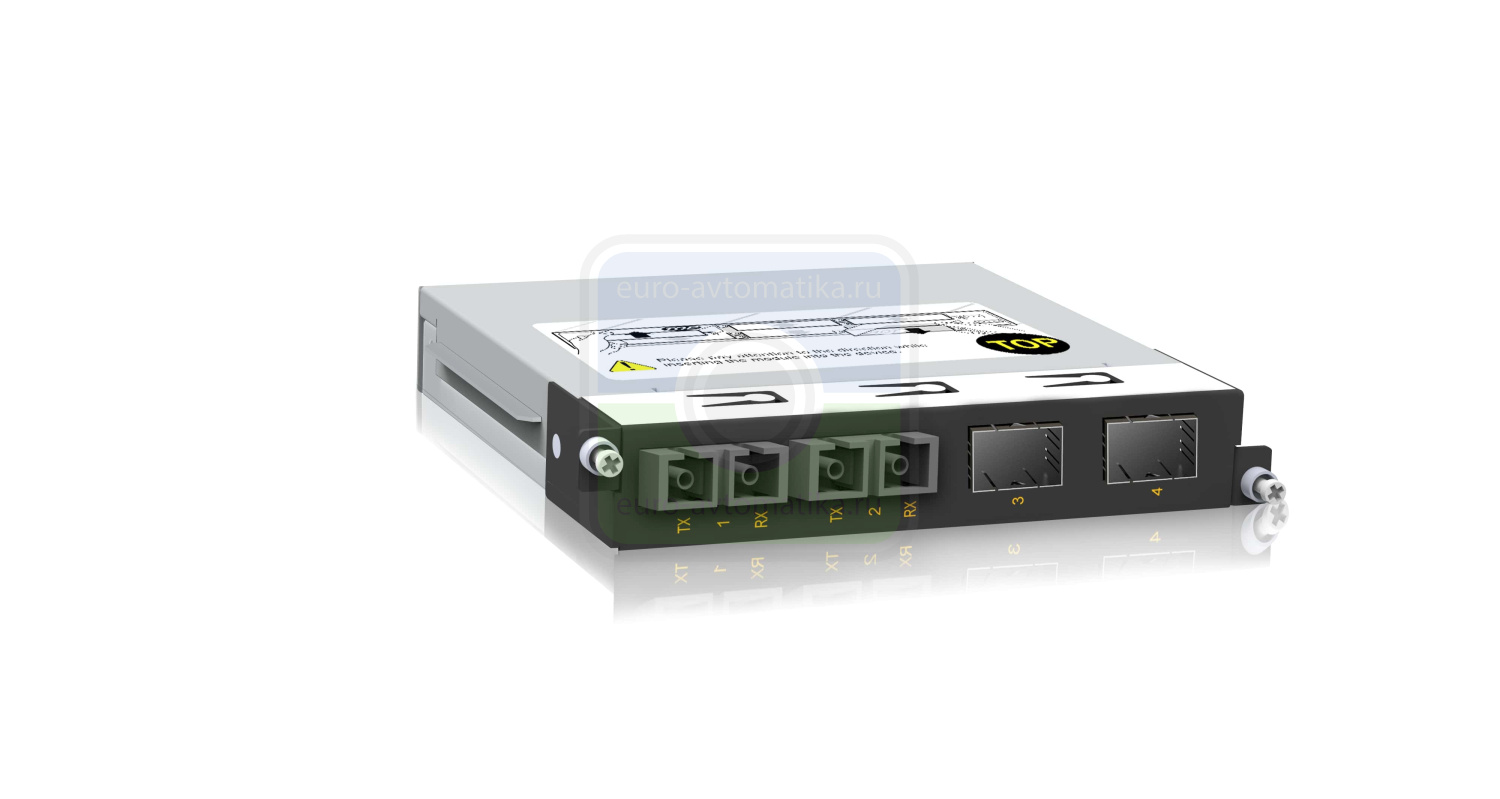 Модуль 2 x 100/1000BaseSFP, 2 x 100BaseFX (одномодовое волокно, разъем SC, дальность 40 км), 0.5U