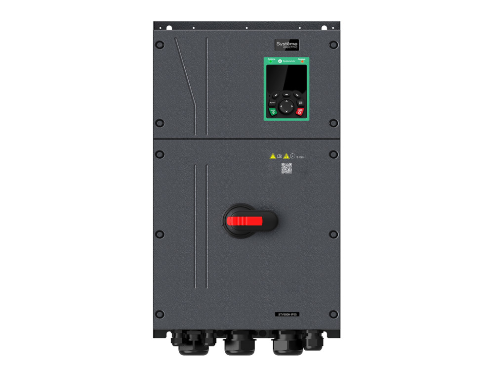 Преобразователь частоты SystemeVar 900H (STV900H). Номинальная мощность: 30 кВт (G-тип: перегрузочная способность: 150% в течение 60с, 180% в течение 10с, 200% в течение 1с. Несущая частота ШИМ: 4 кГц). Номинальный ток: 60 А (G-тип). Питающее напряжение 3Ф 380В (-15%) ~ 440В (+10%). Степень защиты IP55. Встроенный DC-реактор. Встроенный тормозной прерыватель. Встроенный-ЭМС фильтр (Класс С3, согл. EN 61800-3). Коммуникационный протокол: Modbus RTU. Кол-во входов/выходов: 6DI, 2AI, 2DO, 2RO, 1AO. Степень защиты: IP55. Покрытие плат (Класс 3С2, согл. EN 60721-3-3). Температура окружающей среды: от -10°C до +50°C (до +40°C без ухудшения номинальных характеристик). Скалярное управление, векторное управление (без/c обратной связи по скорости). Функции для крановых применений (в том числе функции управления стояночным тормозом двигателя). Работа как с асинхронными, так и с синхронными двигателями. 3 слота для расширения функциональности (возможность использования дополнительных коммуникационных карт, карт расширения входов/выходов, карт энкодеров, карты ПЛК, карты внешнего питания цепей управления 24V DC). Встроенная функция безопасности STO (Safe torque off), SIL2. Встроенный рубильник (для отключения сетевого питания). Габаритные размеры (ДхШхВ), мм: 318х290х587. Вес: 26,5 кг.