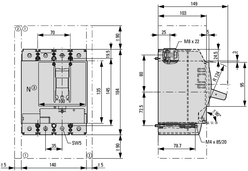 Находится в сфере ответственности компании, монтирующей распределительные устройства. Соблюдать указания для коммутационных устройств. | ||