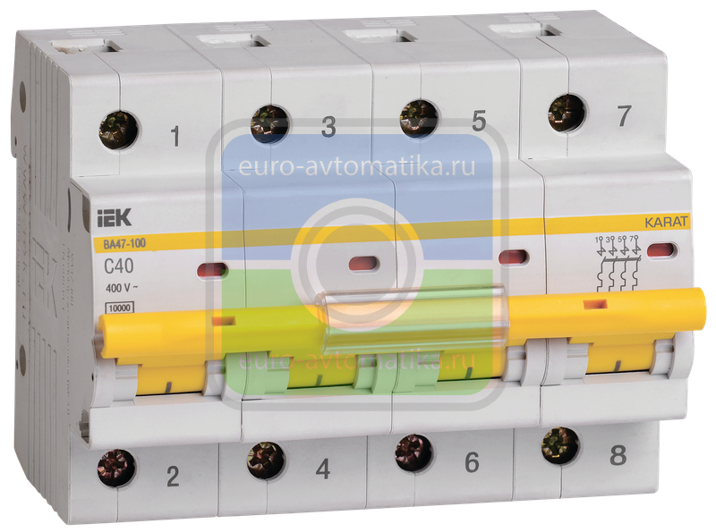 - Увеличенная коммутационная способность 10000А позволяет устанавливать ВА47-100 в качестве вводных автоматических выключателей.