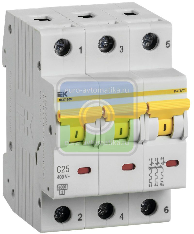 | Номин отключающая способность при коротком замыкании EN 60898 при 400 В, кА | 6.0 |