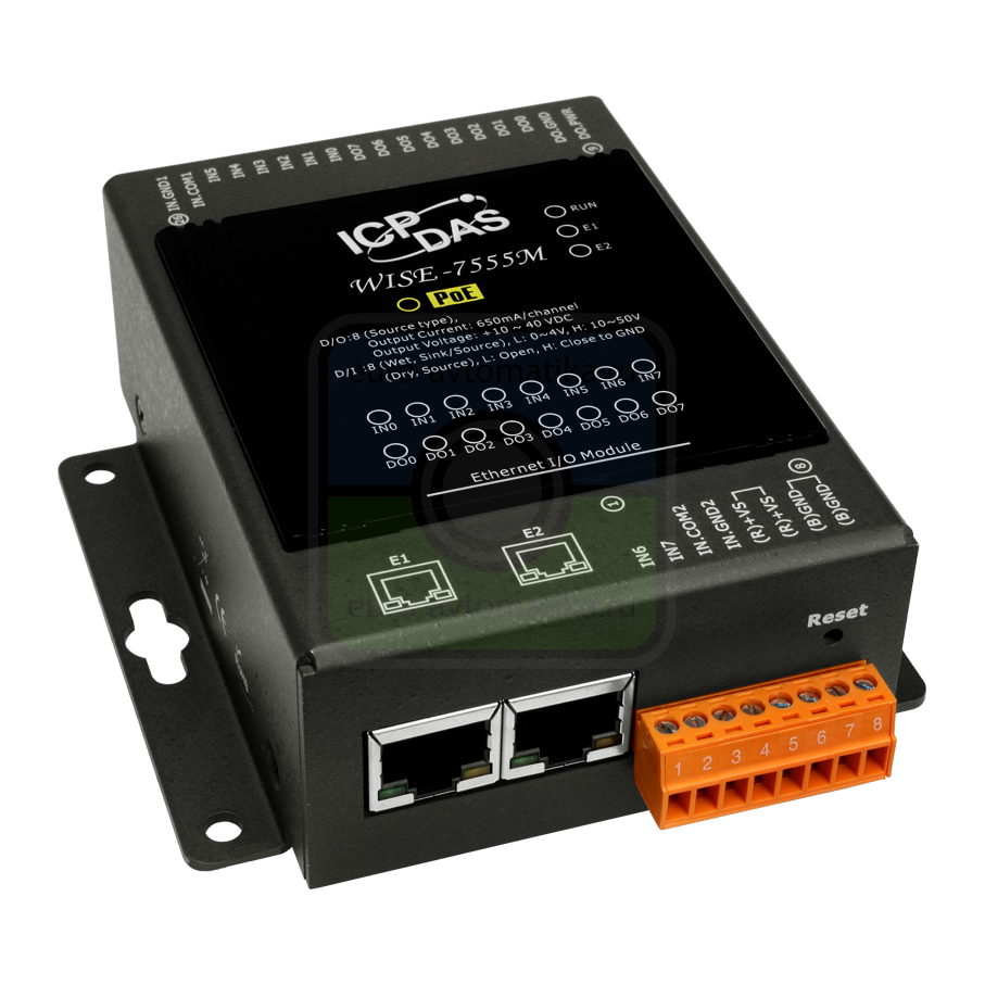 Модуль с 8 каналами дискретного ввода, 8 дискретного вывода и со встроенным 2-портовым Ethernet-коммутатором, с возможностью питания по PoE